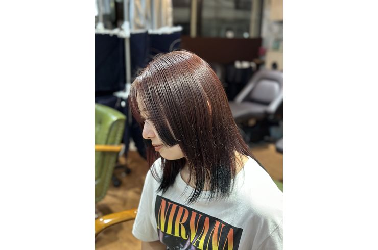 2023/08/24こんにちは! アシスタントの阿部です! この方には赤系のカラーに毛先は黒のエンドカラーをしました。 赤系って残留しやすいのでタイミングは考えた方がいいのですが可愛いんですよね。 デザインカラーで周りと差をつけられるのでおすすめです! -